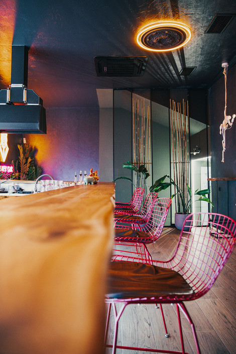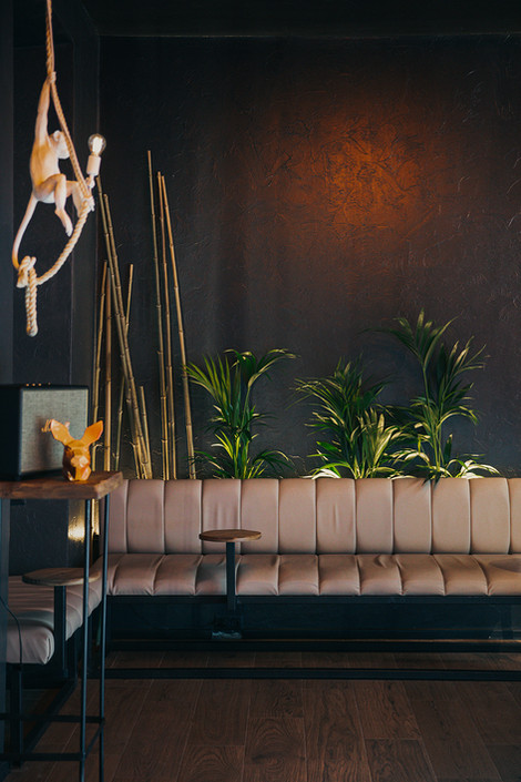 Wallaby is a Tiki-inspired cocktail bar - an exotic destination designed for fun, relaxation, and gathering with friends. The challenge was to create a striking design filled with tropical elements while maintaining a balanced atmosphere. We wanted the interior to feel extravagant but not overwhelming, ensuring guests could truly unwind with a cocktail after a long workday. Despite the modest budget, we successfully brought a captivating Tiki aesthetic to life.